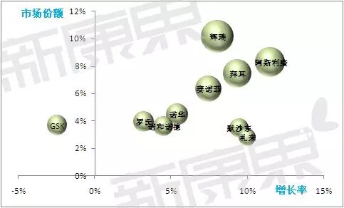在华药品销售规模最大的药企依然是辉瑞,紧随其后的是阿斯利康和拜耳,销售规模都超过了200亿元,在保持规模优势的同时,这三家药企都保持了超行业平均水平的增长,2015年同比销售规模分别增长了8.1%、11.5%和9.3%。